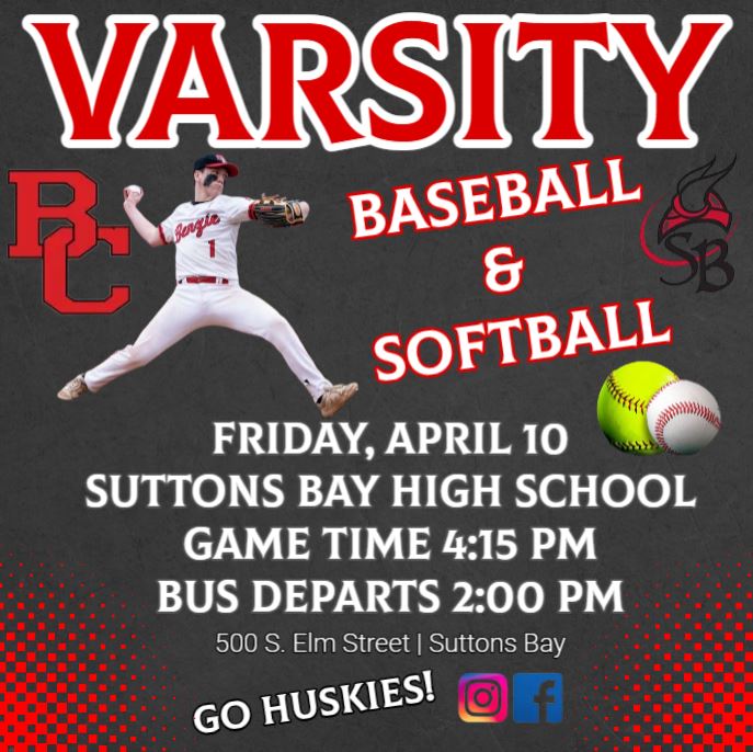 Come on out and cheer on our Varsity Baseball and Softball teams in Suttons Bay tomorrow.